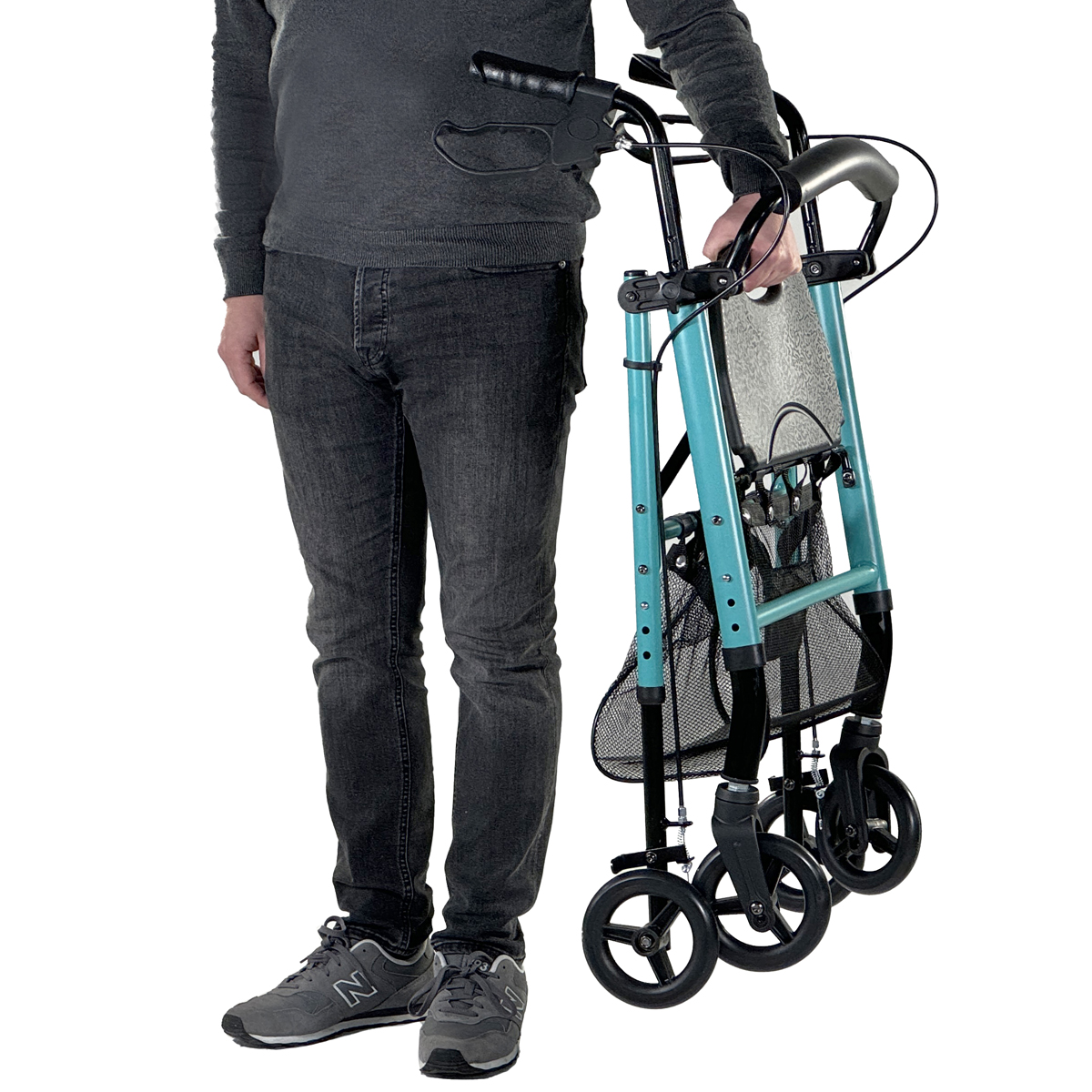 Fabricado en aluminio, pesa solo 6 kg y es muy fácil de plegar para poder guardar y/o transportar. Adecuado para su uso tanto en interiores como en exteriores. Asiento y puños regulables en altura, para adaptarse a las distintas alturas de los usuarios.