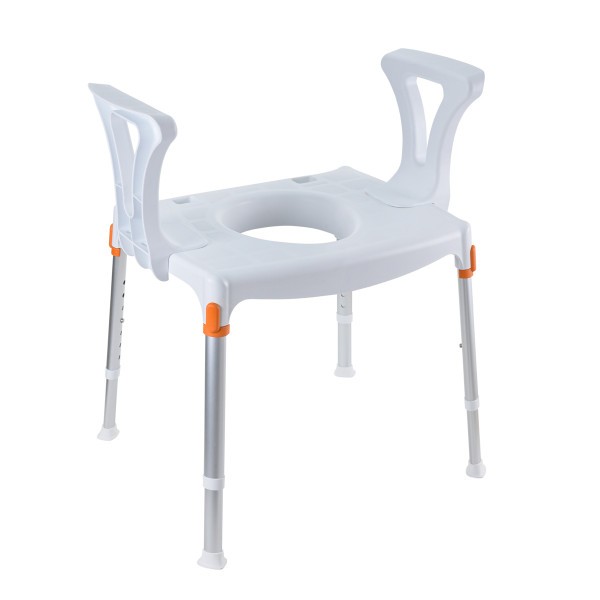 El elevador con brazos puede ajustarse en altura y ligeramente en ángulo de inclinación para que sea más fácil levantarse del wc. Se monta completamente sin herramientas.