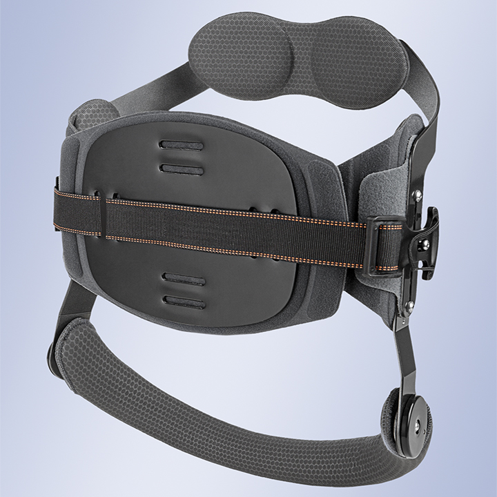 Proporciona hiperextensión de la columna mediante un sistema de tres puntos de apoyo, descargando los cuerpos vertebrales torácicos bajos y lumbares altos. Contribuye a estabilizar y restringir movimientos, ayudando a aliviar el dolor.