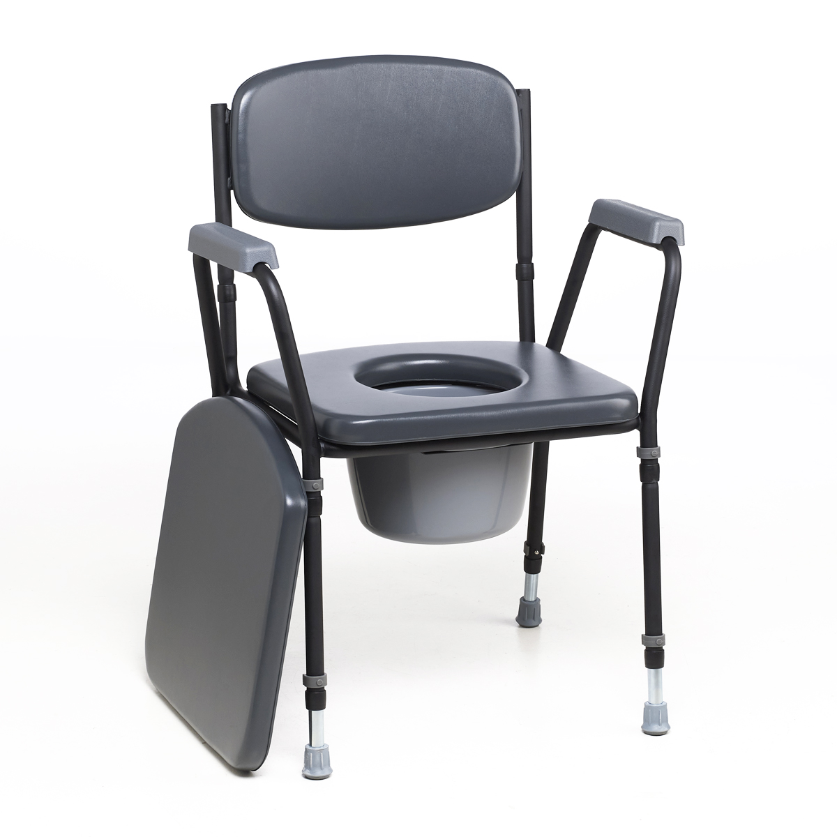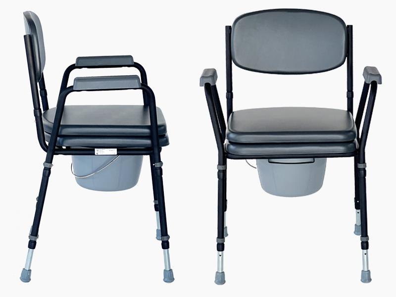 Silla de WC, con acolchado blando especialmente recomendada para aquellos que deben permanecer sentados durante largos periodos. Incluye cubeta de serie.